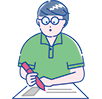 テーマが決まったら、取材して情報を集めましょう。家の人に、「健康診断の結果」や、勤め先からもらう「医療費・保険給付金のお知らせ」などの資料を見せてもらったり、話を聞かせてもらったりしましょう。本やインターネットも使って制度の仕組みなどを調べてみましょう。分かったことはノートにメモしておきましょう。